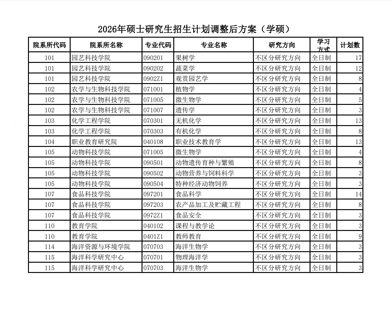 河北科技师范学院2026年硕士研究生招生计划调整公示(学硕)