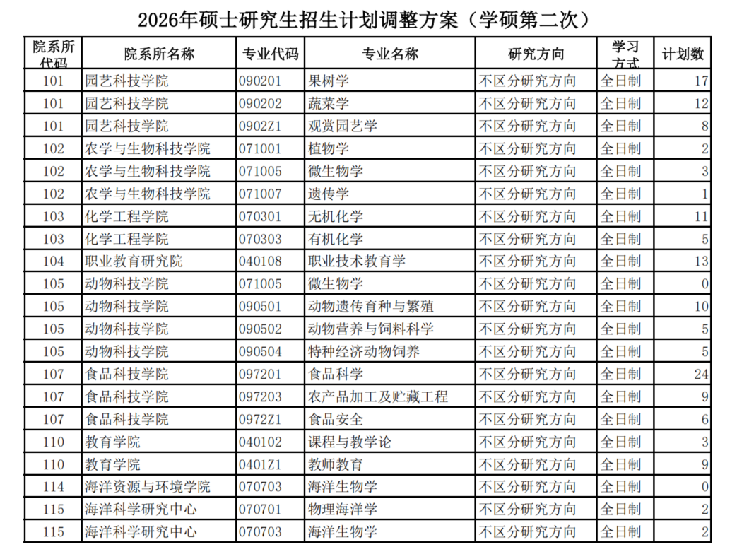 河北科技师范学院2026年硕士研究生招生计划调整公示(学硕第二次)